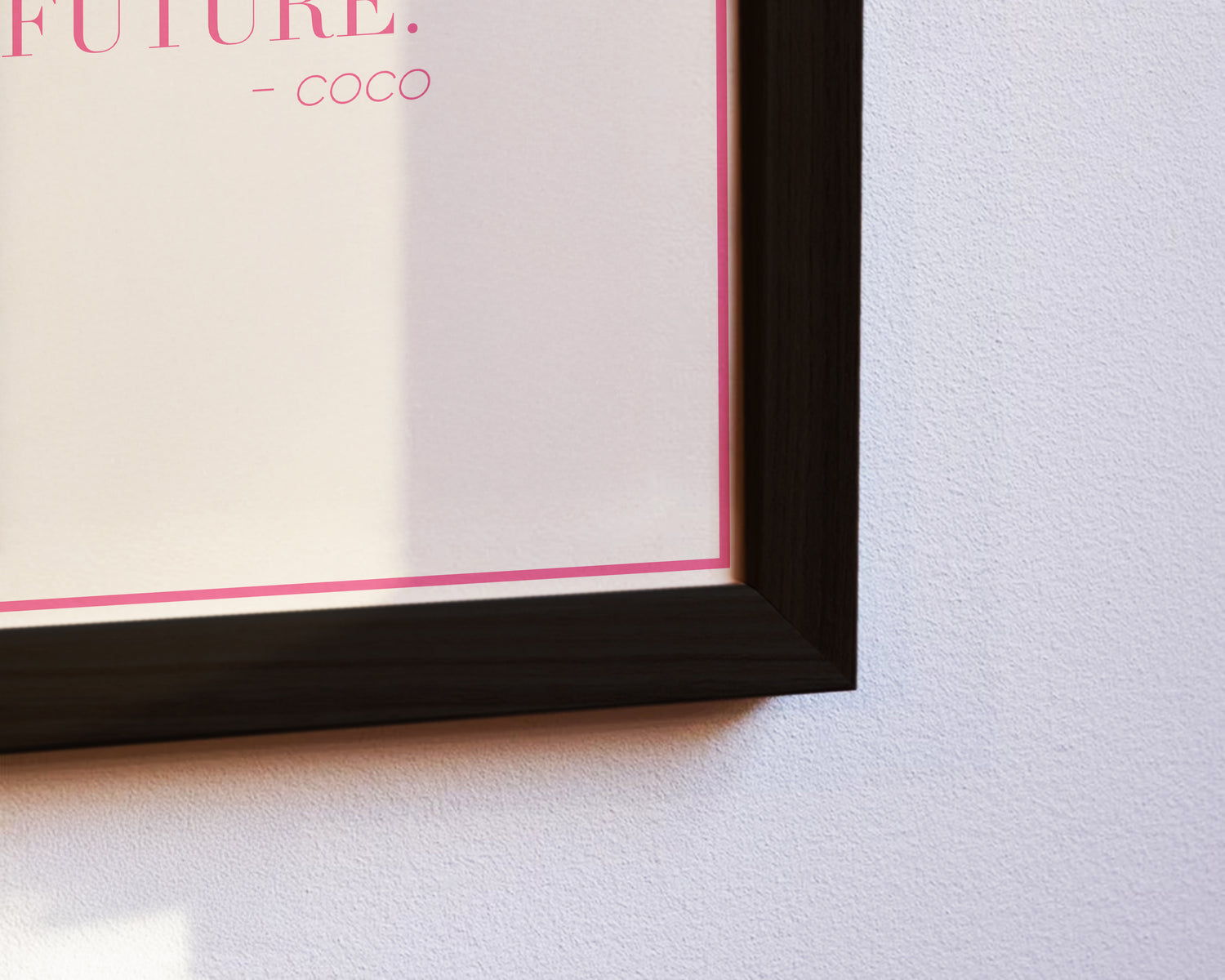 Elegantes Zitatposter in Rosa-Weiß mit dem ikonischen Spruch von Coco Chanel: „A woman who doesn’t wear perfume has no future.“ Die stilvolle Typografie und der dezente Farbhintergrund verleihen dem Motiv einen zeitlosen, luxuriösen Charakter. Ideal für Parfum- und Modefans, Boutiquen oder als dekoratives Statement im Schlafzimmer oder Ankleidezimmer. Gedruckt auf hochwertigem, mattem Premium-Papier sorgt es für gestochen scharfe Schrift und edle Optik.