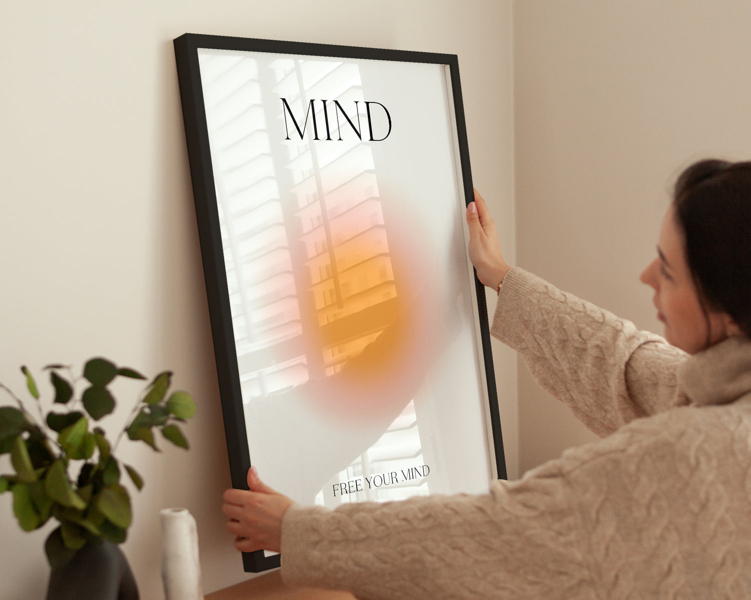Mind steht für Klarheit, Fokus und geistige Freiheit. Dieses Poster zeigt einen harmonischen Farbverlauf in orange und pink mit ruhiger Ausstrahlung. Der Schriftzug Mind macht es zum perfekten Begleiter für Meditationsräume, kreative Ateliers oder moderne Schlafzimmer mit ästhetischer Ausrichtung.