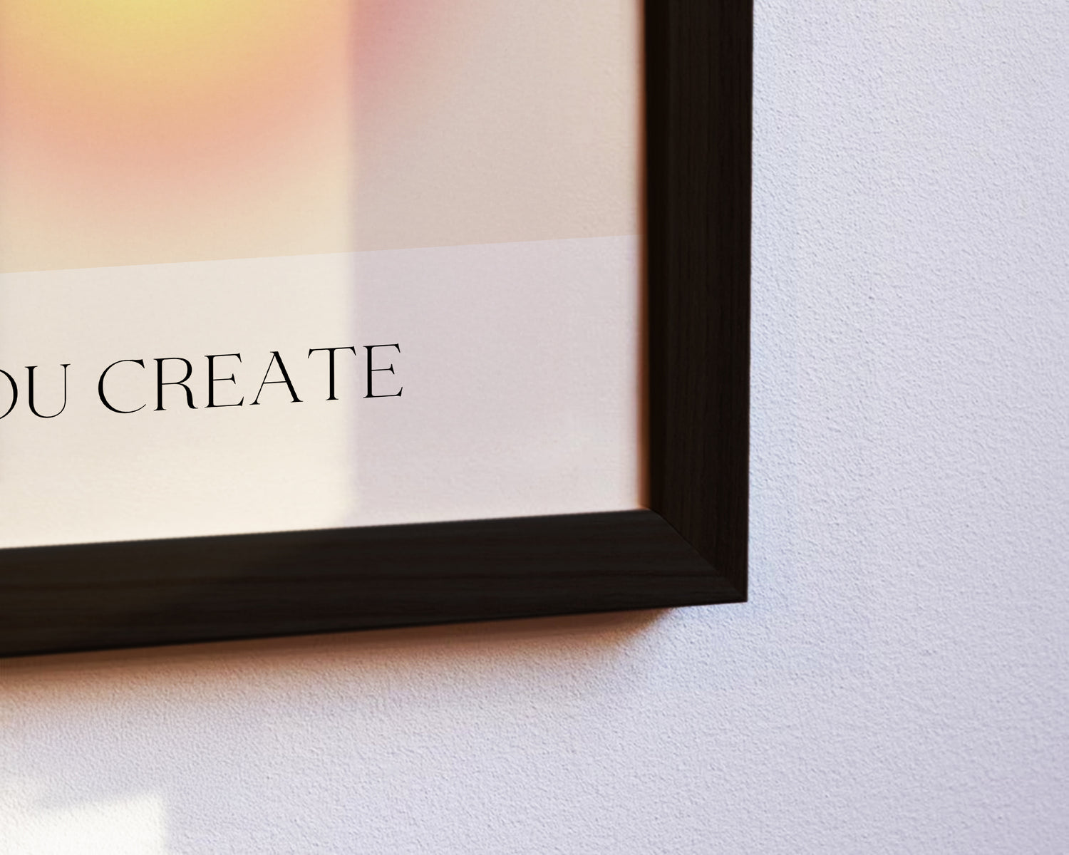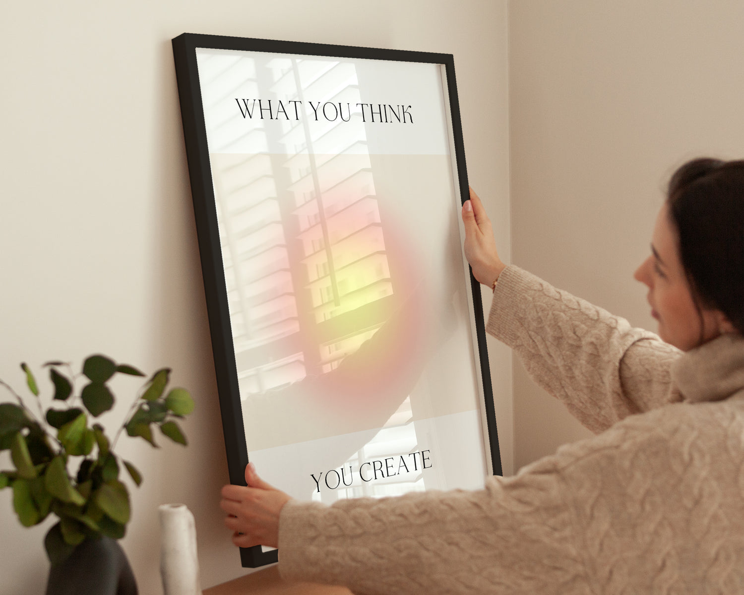 Das Poster What You Think You Create ist eine visuelle Erinnerung an die Macht der Gedanken. Der helle Farbverlauf zwischen Gelb und Rosa bringt Leichtigkeit und Energie in jeden Raum. Ideal für Coachingräume, Home Office oder moderne Wohnbereiche.