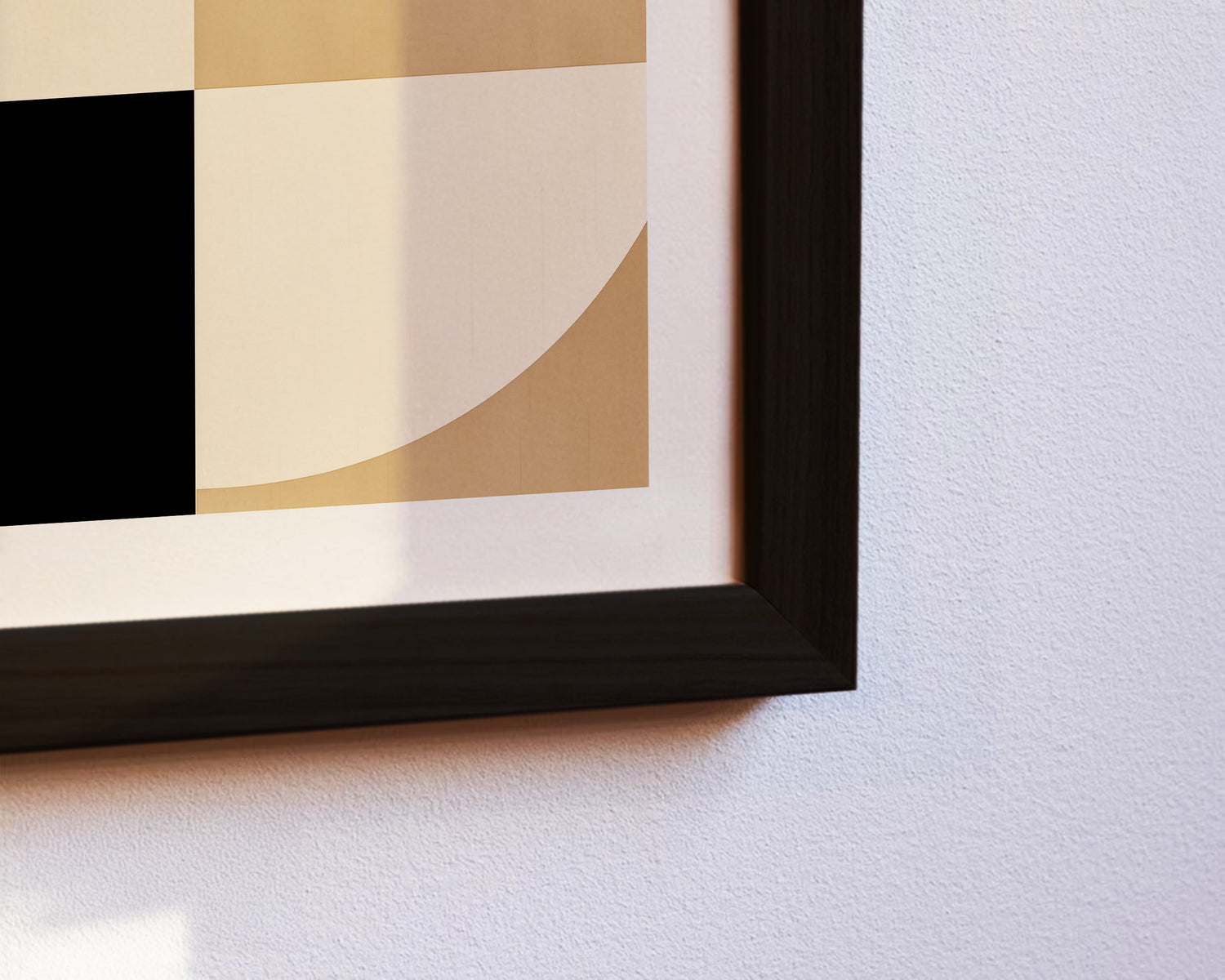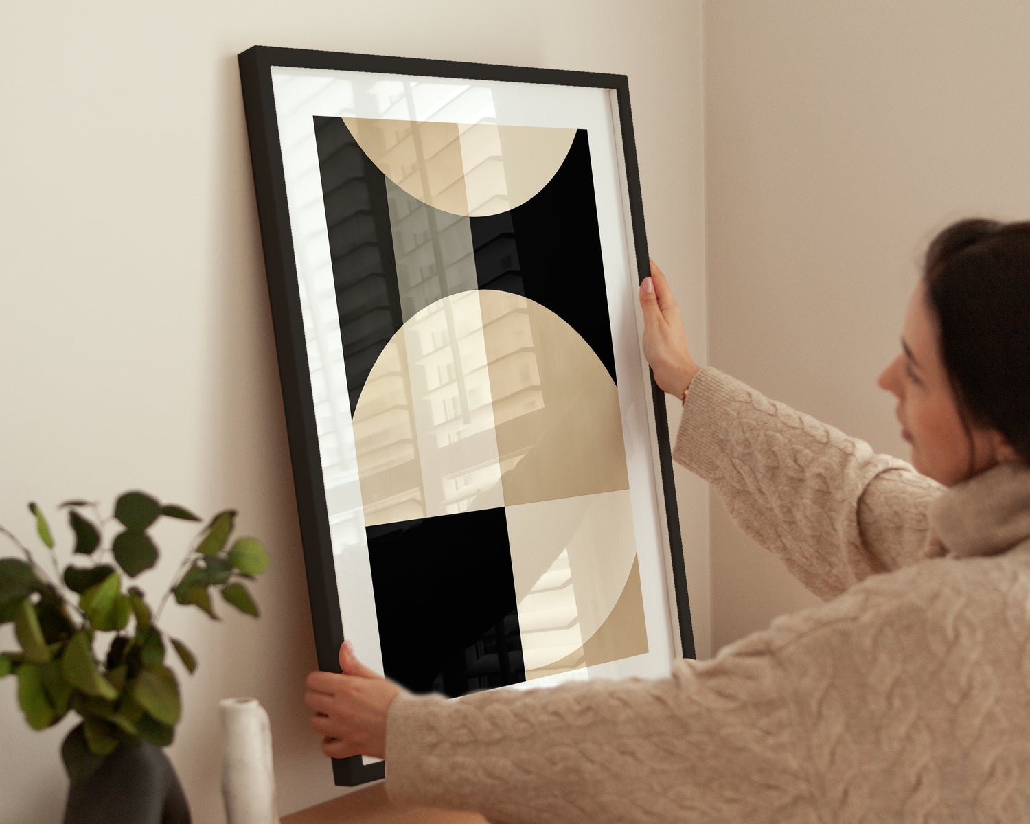 Dieses Bauhaus-inspirierte Poster kombiniert warme Erdtöne mit klaren Formen und bringt minimalistische Eleganz an deine Wand.