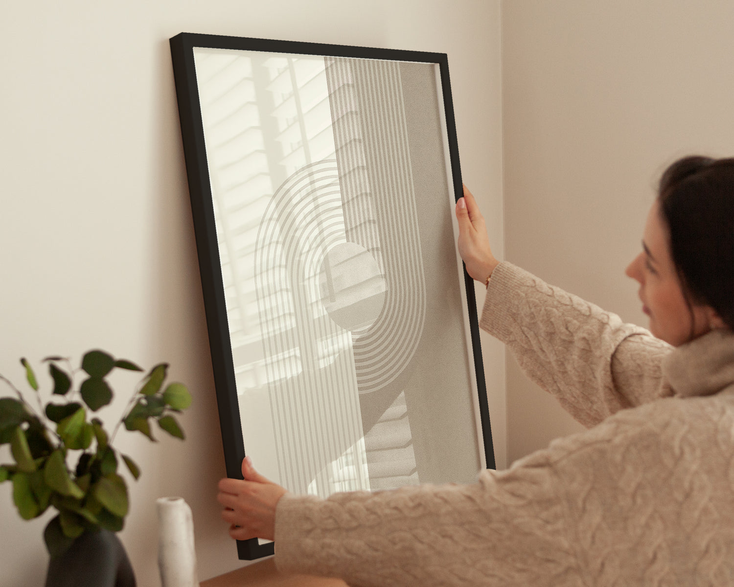 Flow bringt Bewegung und Ordnung in einem minimalistischen Design zusammen. Geometrische Linien treffen auf natürliche Farben – ideal für ruhige Räume, Arbeitsbereiche oder moderne Wohnzimmer.