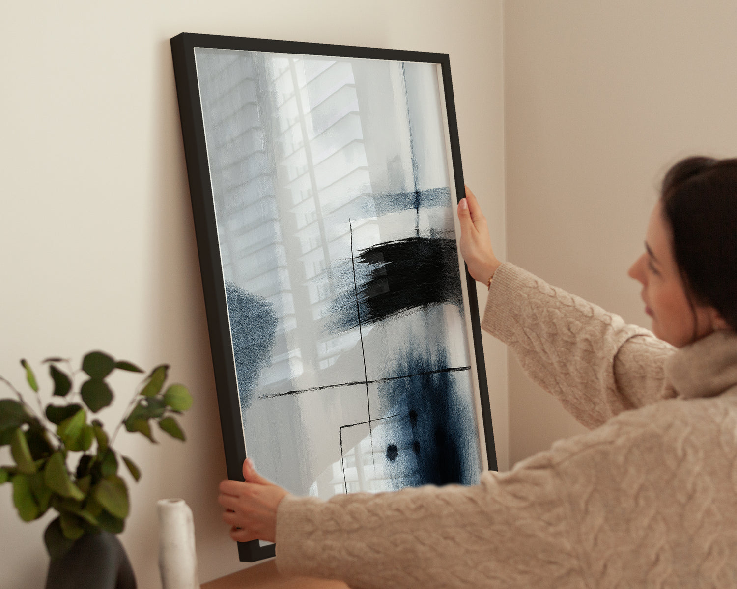 In Motion ist ein lebendiges Kunstwerk, das durch Dynamik und Struktur überzeugt. Ideal für moderne Räume, die Energie, Kunst und Tiefe ausstrahlen sollen – in Blau und Schwarz gehalten für starken Kontrast.