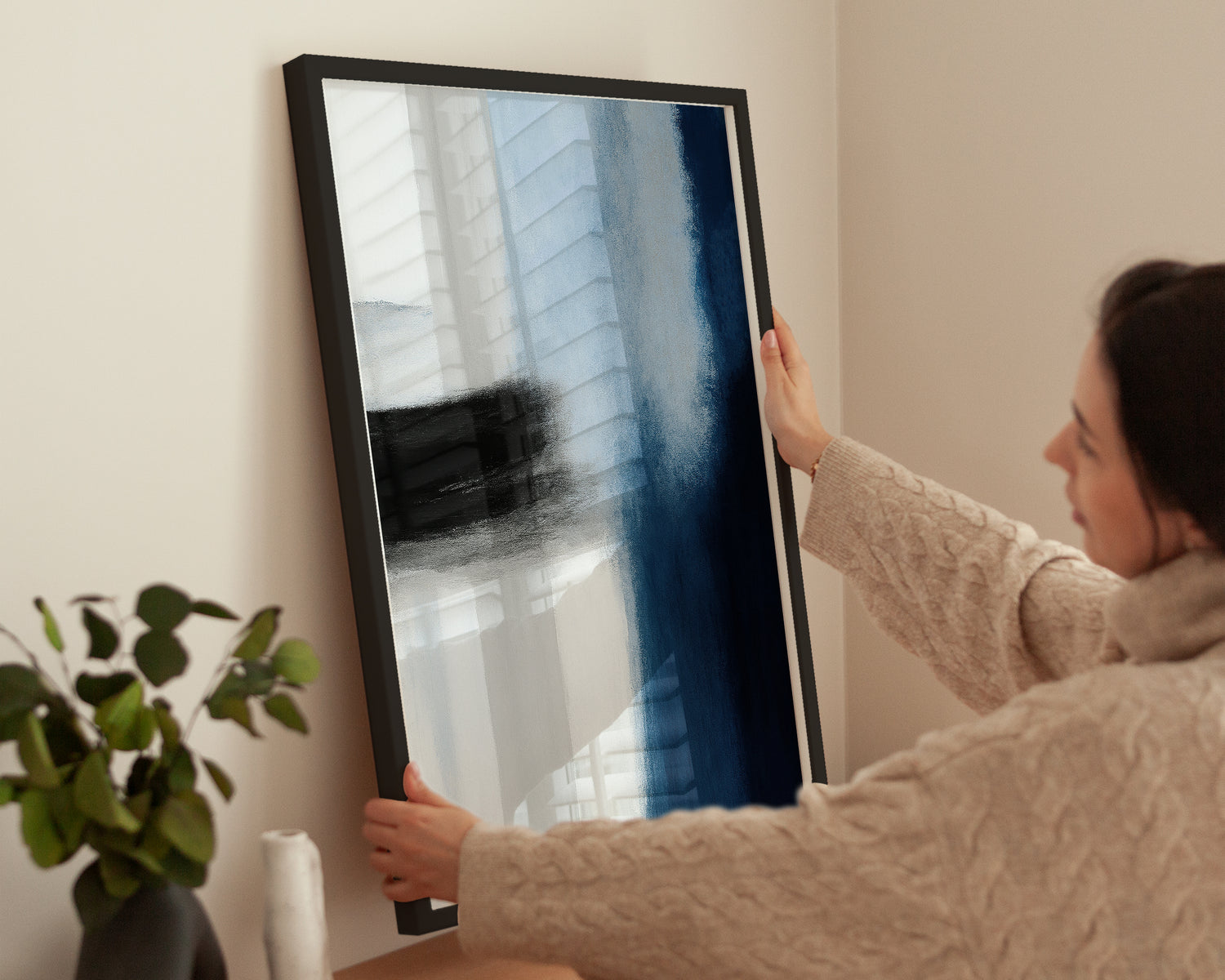Midnight vereint dunkle Pinselstriche und Tiefe. Das Motiv wirkt kraftvoll und emotional, perfekt für moderne Räume mit mutiger Bildsprache. Ideal für Arbeitsräume, Galeriewände oder Wohnzimmer mit Stil.