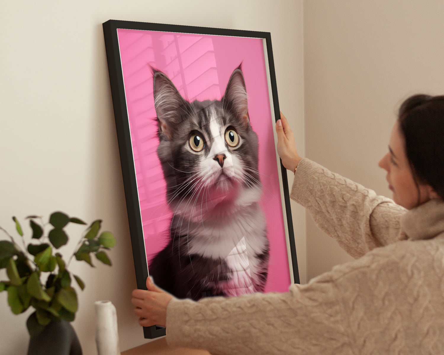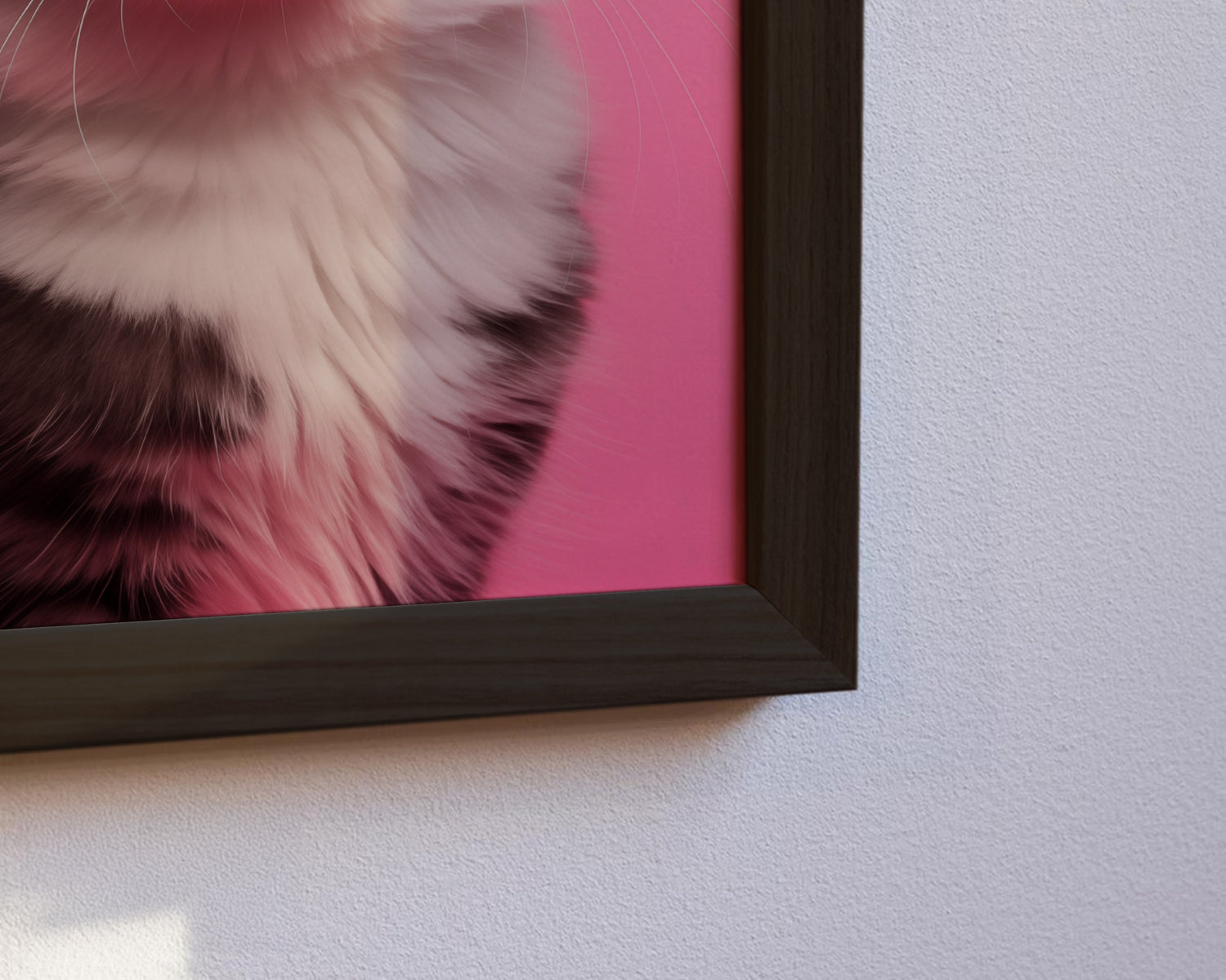 Das minimalistische Motiv einer Katze auf Pink bringt moderne Eleganz in dein Zuhause.