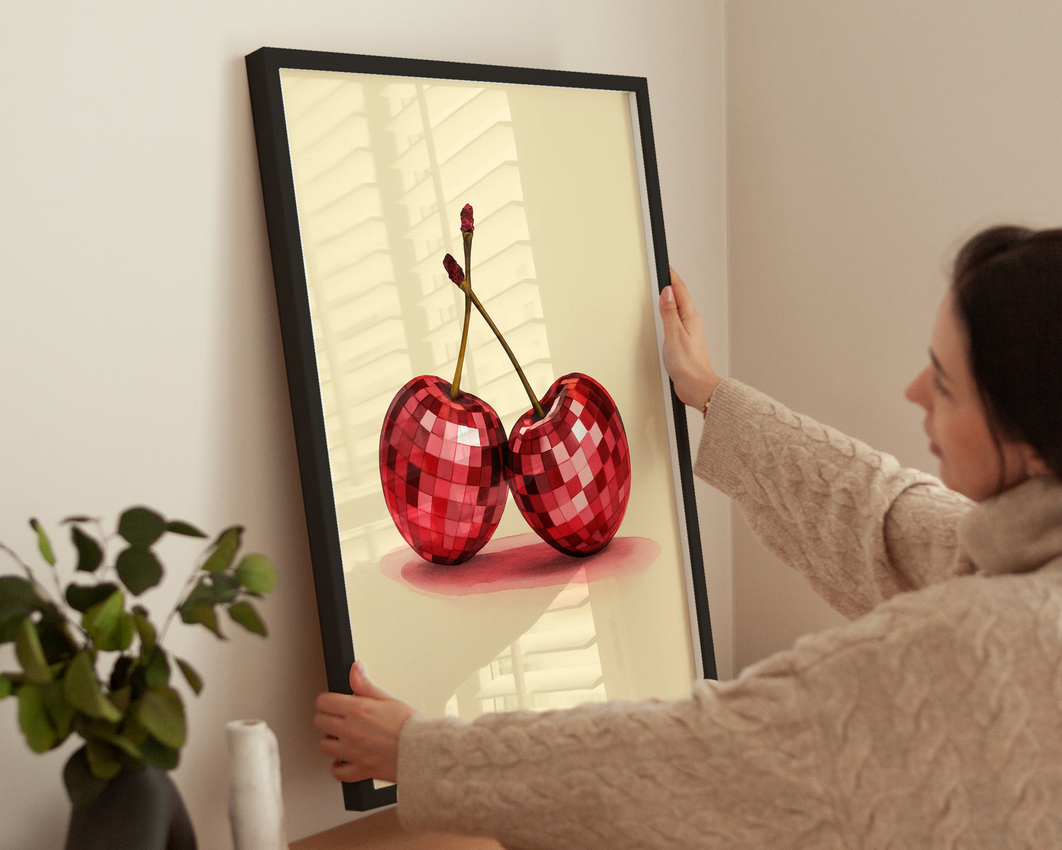 Cherry Disco bringt Retro-Flair in moderne Räume. Die glänzenden Kirschen erinnern an Discokugeln und strahlen gute Laune aus. Perfekt für Küchen, Bars oder stylishe Wohnbereiche.