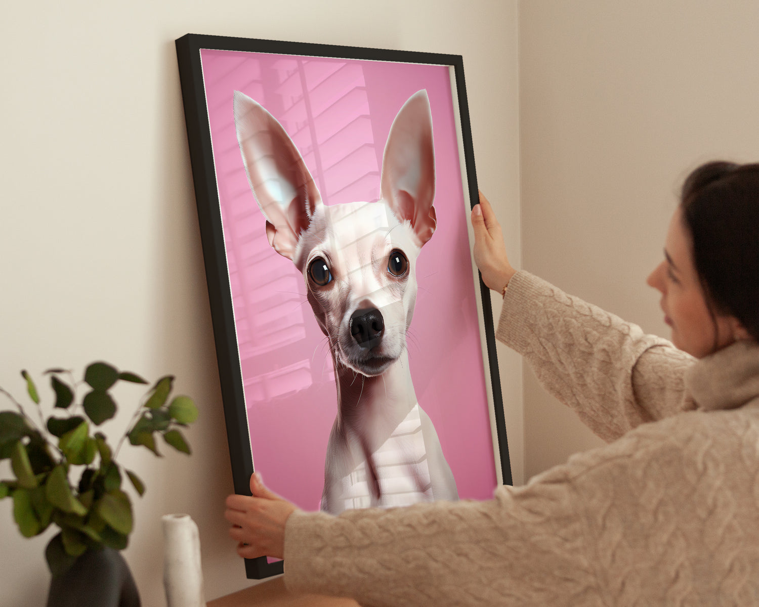 Dieses Poster kombiniert verspielten Pink-Look mit einem niedlichen Chihuahua – ideal für jeden Raum.