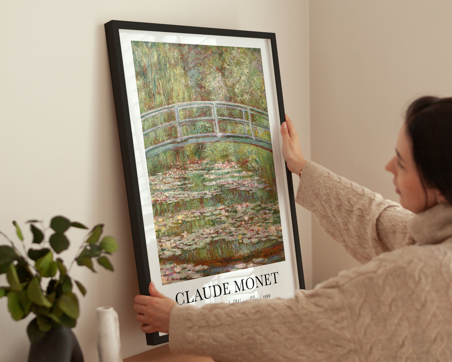 Dieser Kunstdruck zeigt Claude Monets berühmtes Gemälde „Bridge Over a Pond of Water Lilies“ von 1899. Die zarten Impressionen von Wasser, Seerosen und einer japanischen Brücke bringen zeitlose Eleganz an deine Wand. Hochwertig gerahmt in Schwarz oder Weiß, ideal für Wohnzimmer, Schlafzimmer oder Flur.