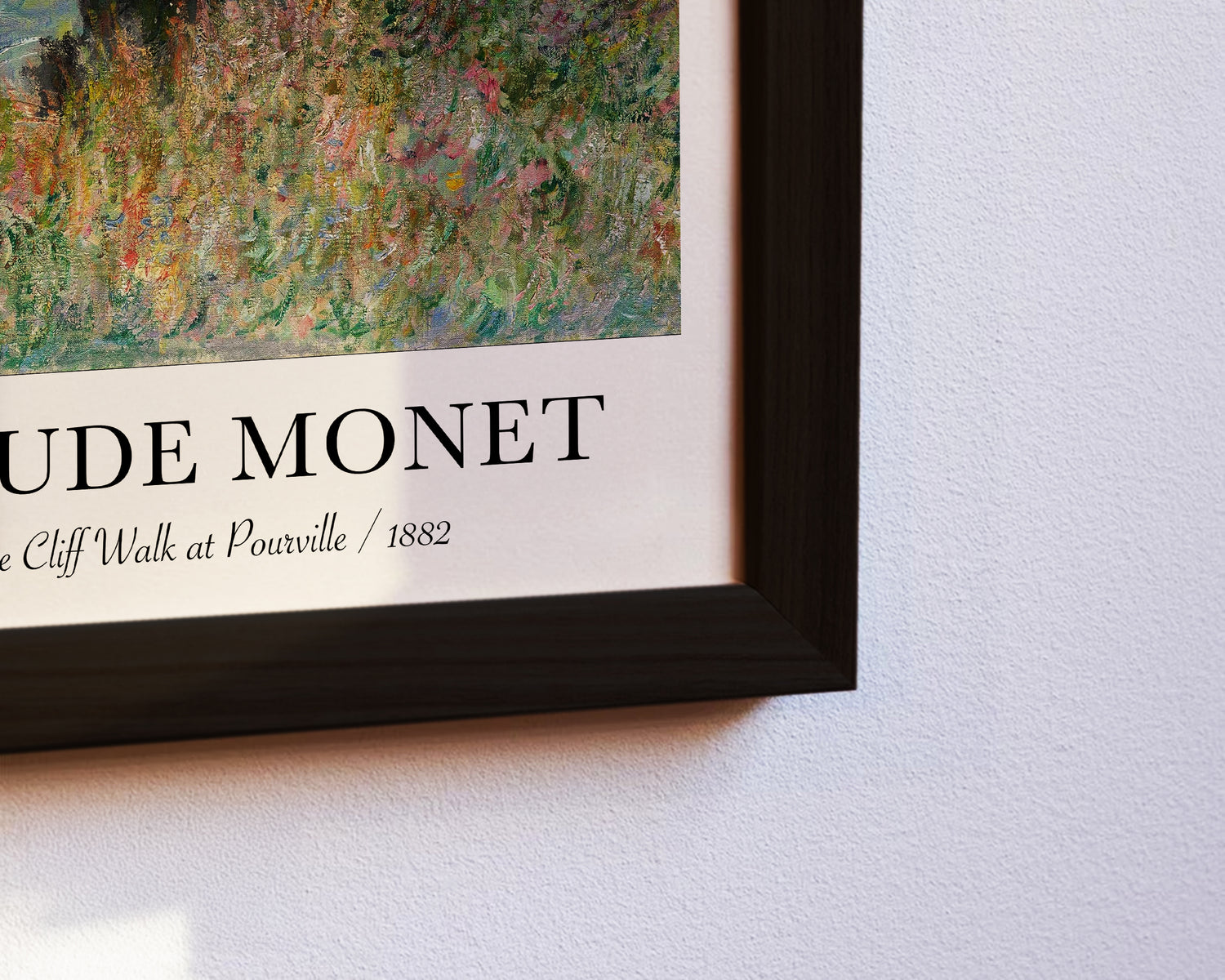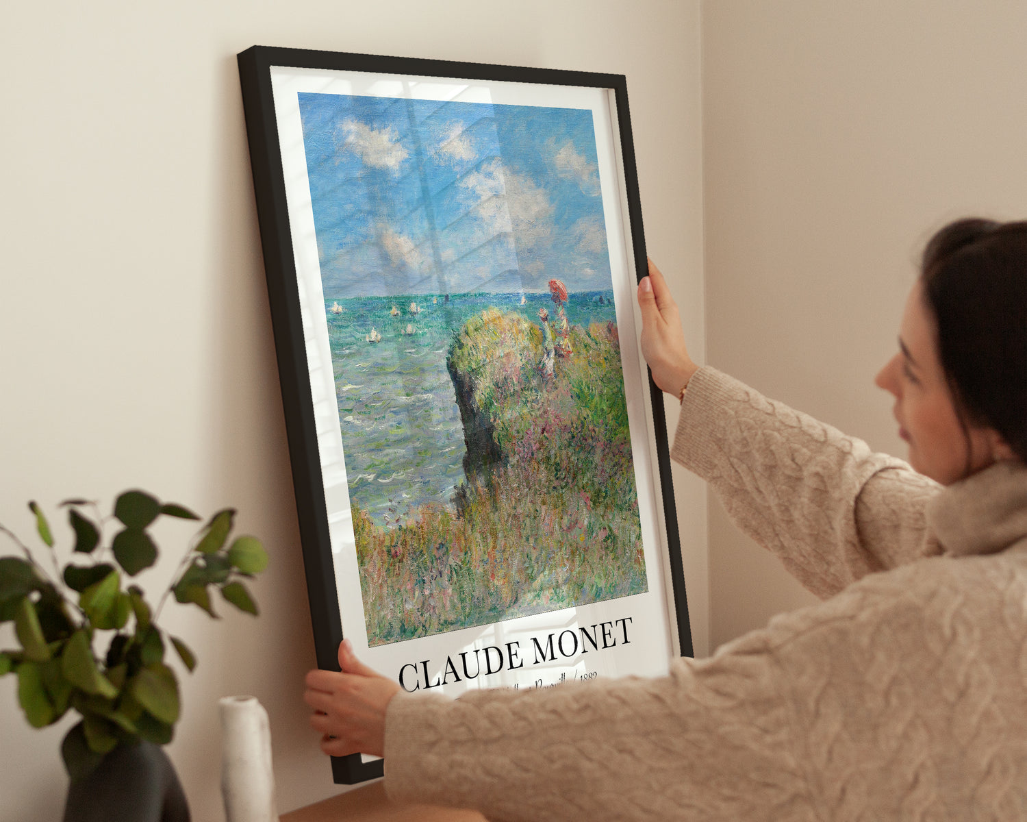 Dieses Poster zeigt Monets impressionistisches Werk „The Cliff Walk at Pourville“ von 1882. Sanfte Farben, blühende Klippen und das weite Meer schaffen eine beruhigende Atmosphäre. Gerahmt in Schwarz oder Weiß ein stilvoller Akzent für Wohnzimmer, Schlafzimmer oder Büro.