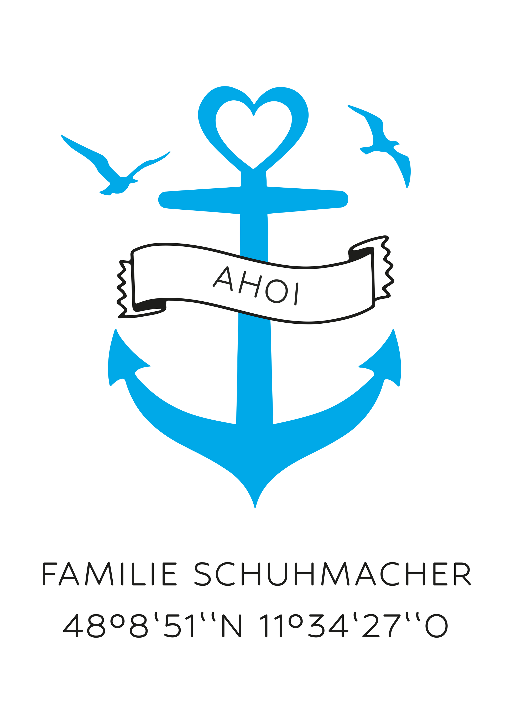 Familienposter Anker mit Name, Spruch & Koordinaten - Personalisiert