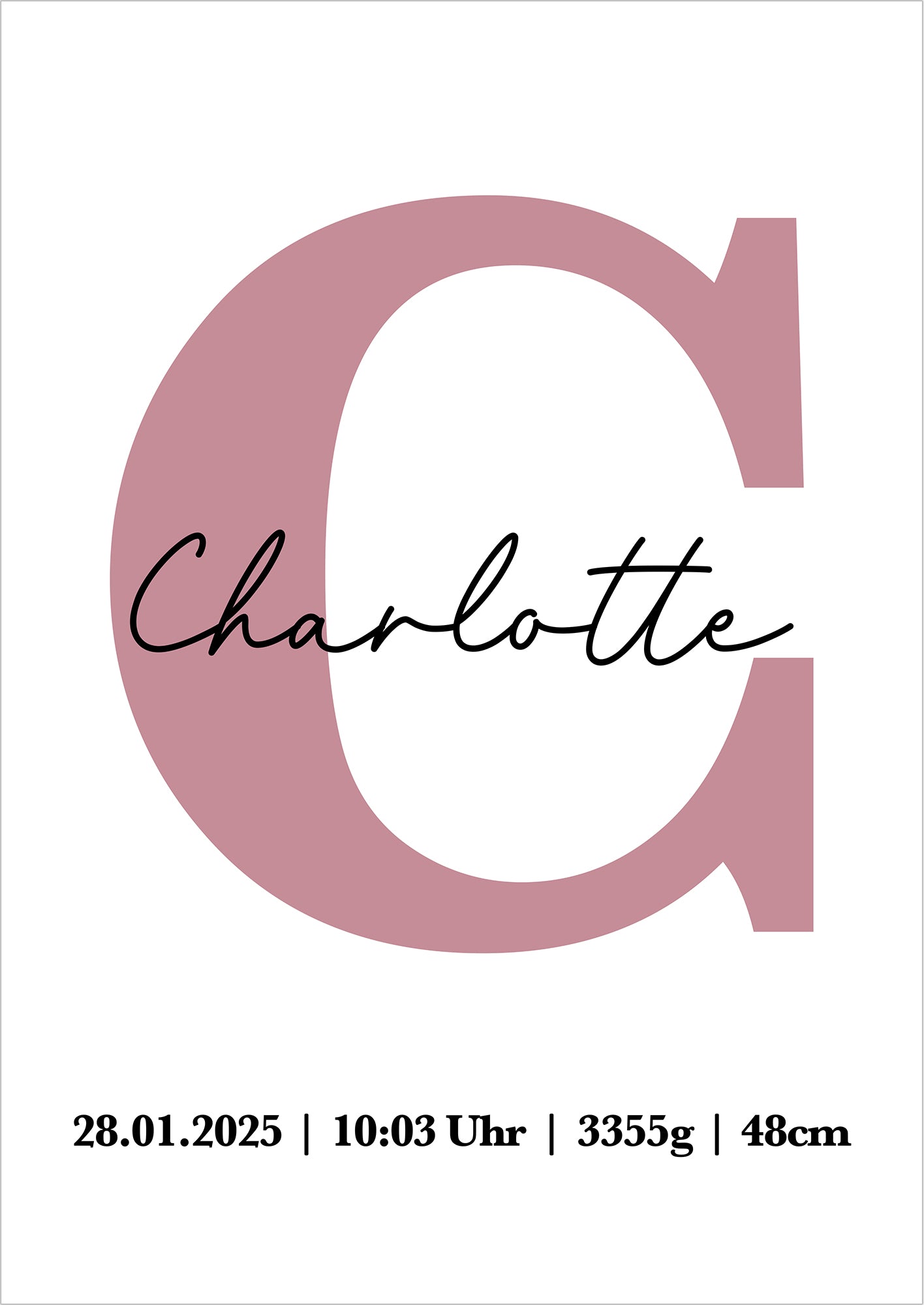 Das personalisierte Geburtsposter mit Buchstabe für Mädchen von JUHMI ist die perfekte Kombination aus modernem Design und liebevoller Erinnerung. Die große Initiale, kombiniert mit dem Namen sowie den wichtigsten Geburtsdaten wie Datum, Uhrzeit, Größe und Gewicht, macht dieses Poster zu einem einzigartigen Erinnerungsstück. Mit seinen sanften Farben passt es ideal ins Kinderzimmer und begleitet dein Kind ein Leben lang. Jedes Poster wird individuell gestaltet und hochwertig gedruckt – ein wunderschönes Geschenk für frischgebackene Eltern, Großeltern oder als stilvolle Erinnerung an den besonderen Tag der Geburt.