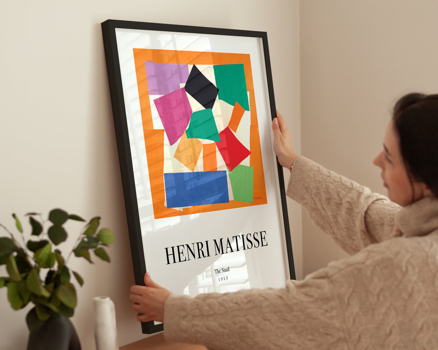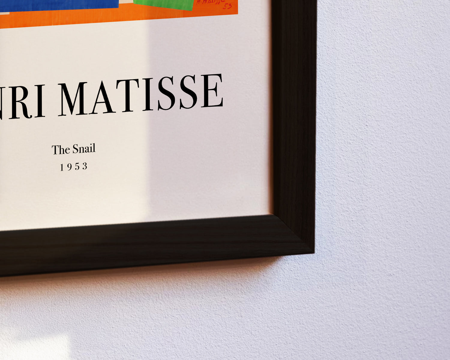Henri Matisse Gemälde: „The Snail“ (L’Escargot), entstanden 1953. Großformatige Collage aus bunten Papierstücken, abstrahierte Spirale. Dieses Werk gilt als Beispiel für Matisses unverwechselbaren Stil zwischen Fauvismus und Moderne. Ursprünglich von Henri Matisse geschaffen. Entdecke mehr von seiner Kunst in unserer Kategorie Berühmte Kunstwerke. Künstler: Henri Matisse