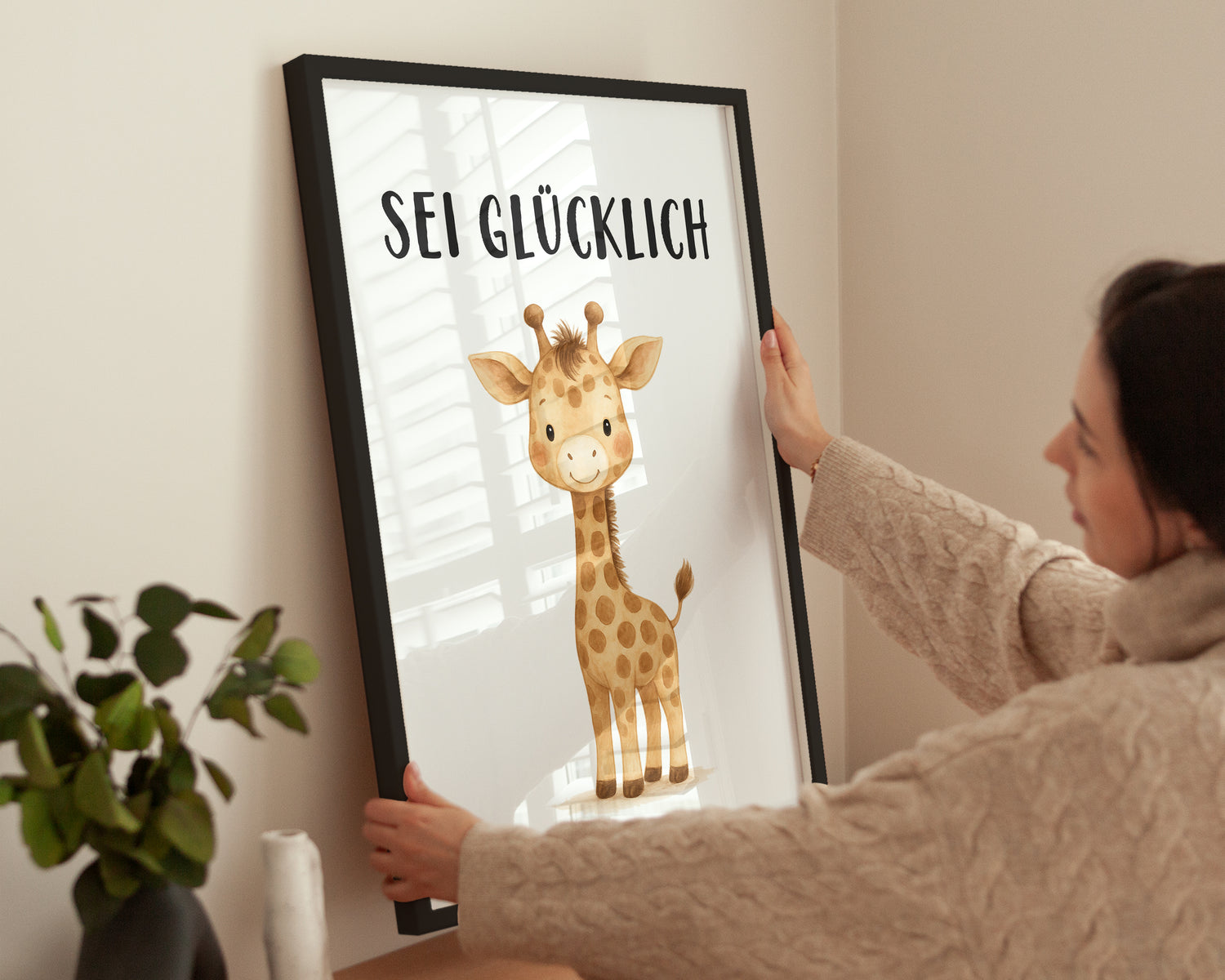 Kinder Affirmation Giraffe - Sei Glücklich Poster