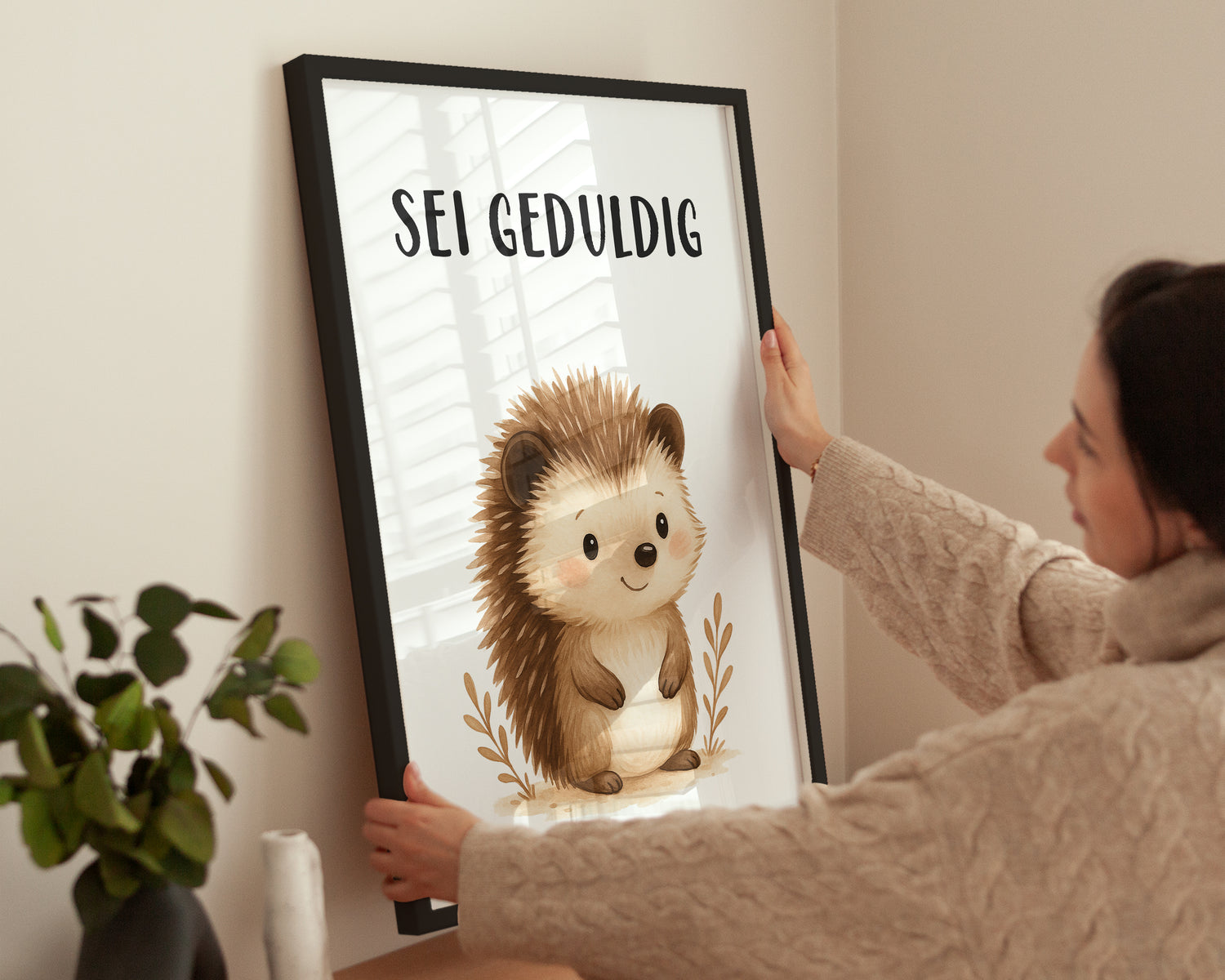Kinder Affirmation Igel - Sei Geduldig Poster