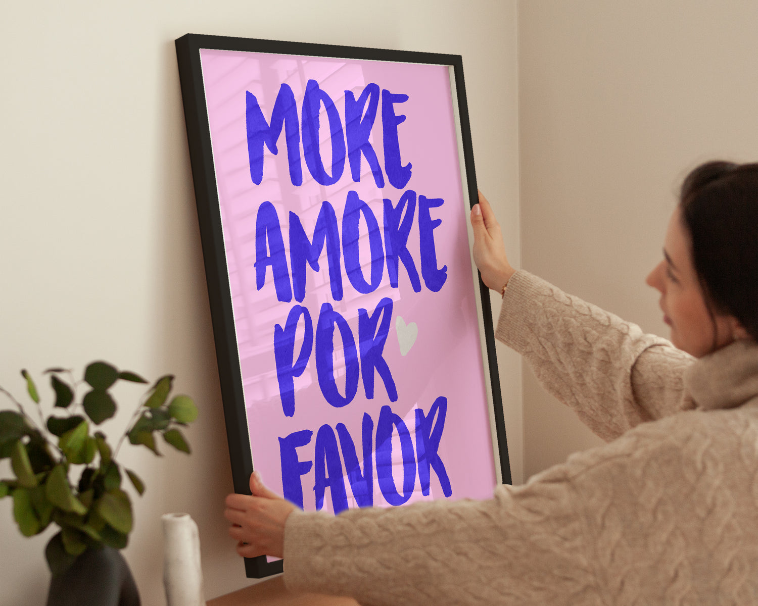 Mehr Liebe bitte! Das farbenfrohe Poster „More Amore Por Favor“ setzt ein charmantes Statement in jedem Raum. Perfekt für moderne Galeriewände und liebevolle Botschaften.