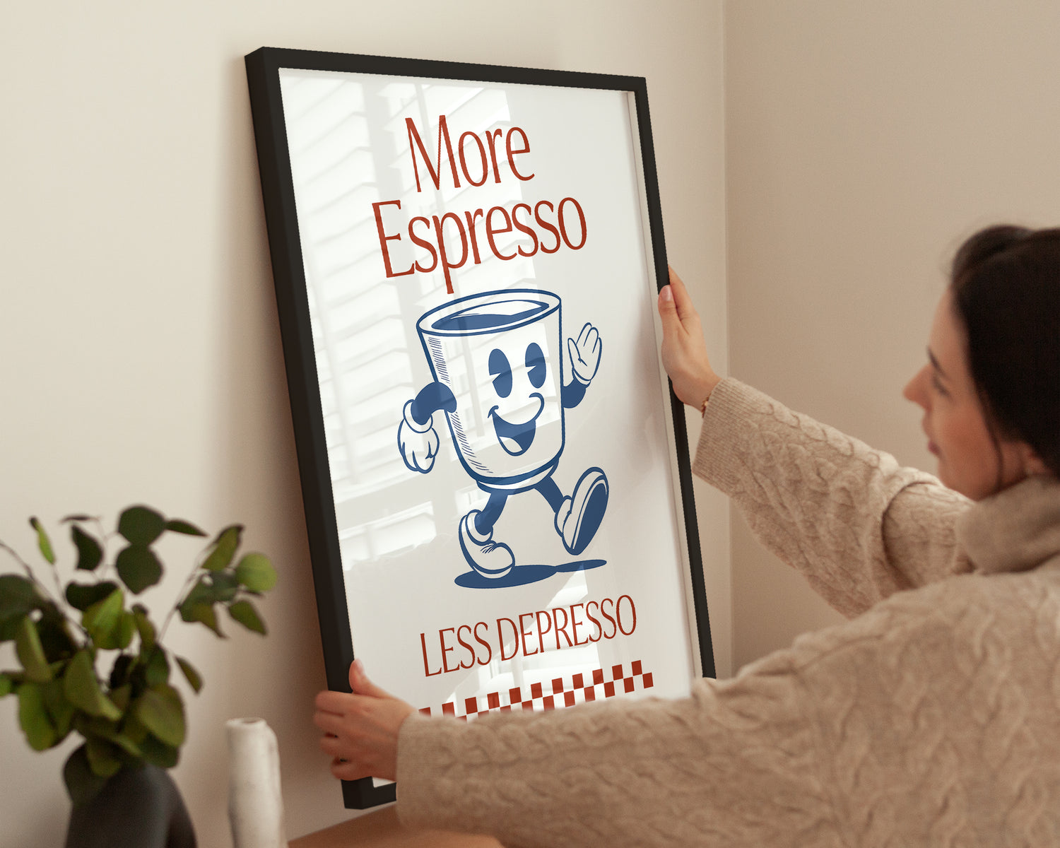 Die perfekte Mischung aus guter Laune und Kaffee – dieses Poster bringt Energie und ein Lächeln in dein Zuhause oder deine Arbeitsumgebung