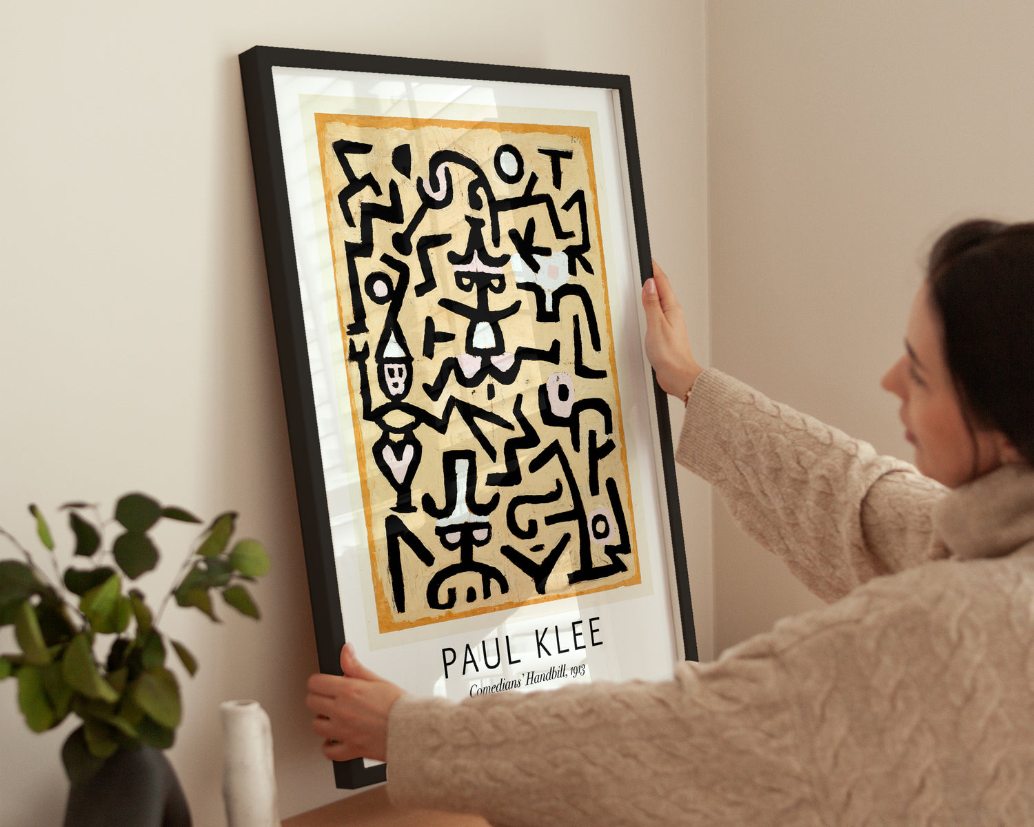 Paul Klee Gemälde: „Comedians’ Handbill“ (1938), ein Werk des Moderne / Surreal. Ursprünglich von Paul Klee gemalt. Entdecke mehr von seiner Kunst in unserer Kategorie Berühmte Kunstwerke. Künstler: Paul Klee