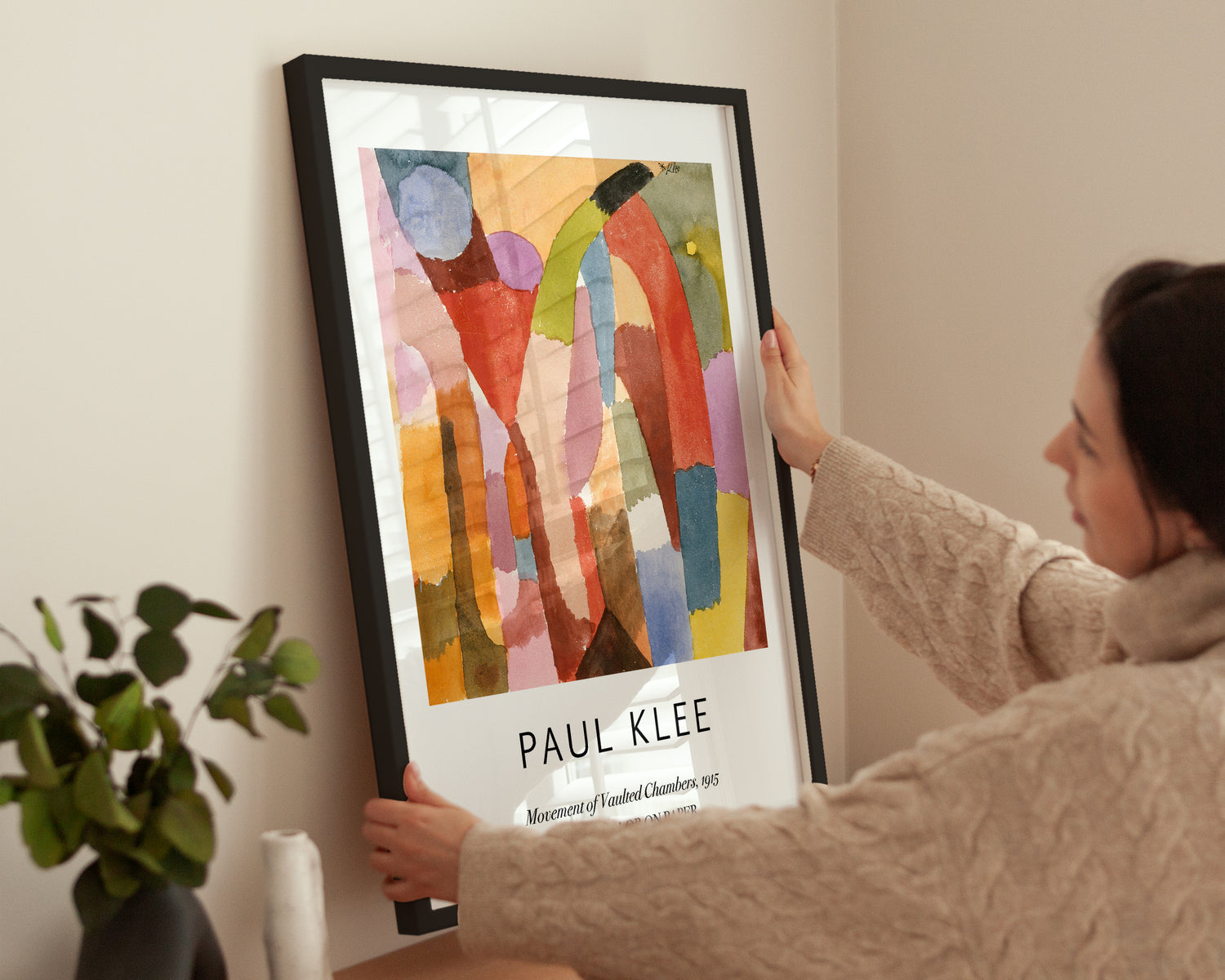 Paul Klee Gemälde: „Movement of Vaulted Chambers“ (1915), ein Werk des Klassische Moderne. Ursprünglich von Paul Klee gemalt. Entdecke mehr von seiner Kunst in unserer Kategorie Berühmte Kunstwerke. Künstler: Paul Klee