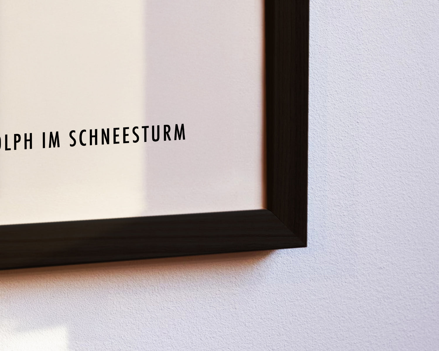 Dieses minimalistische Weihnachts-Poster zeigt Rudolph, das Rentier, reduziert auf klare Linien und dezente Farben, umgeben von einer stilisierten Schneesturm-Atmosphäre. Die Schlichtheit des Designs macht es zu einem eleganten Blickfang für moderne Interieurs. Gedruckt auf hochwertigem, mattem Premium-Papier sorgt es für präzise Linien, feine Farbnuancen und eine edle Wirkung – perfekt für Designliebhaber, die Weihnachten dezent, aber wirkungsvoll inszenieren möchten.