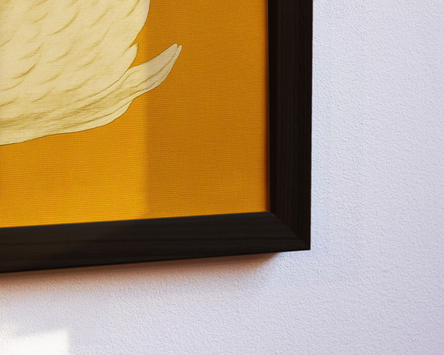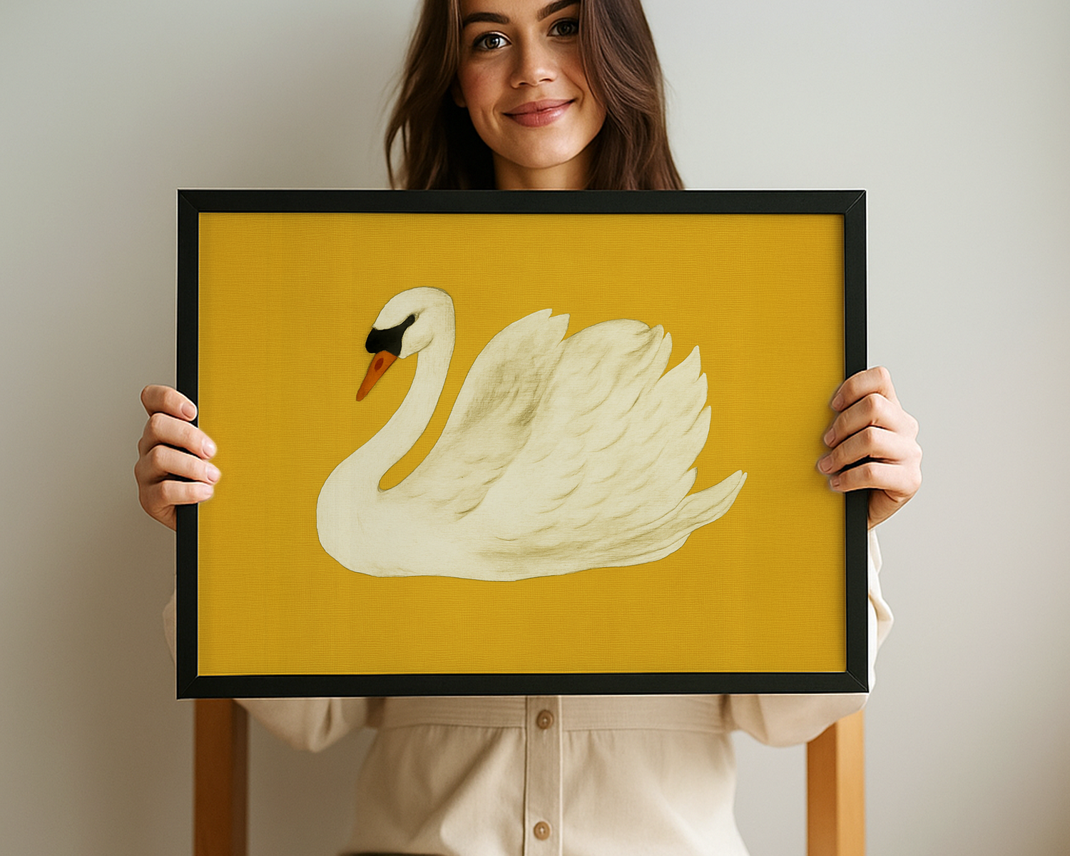 Dieses Poster zeigt einen eleganten weißen Schwan vor einem kräftigen gelben Hintergrund. Die minimalistische Illustration kombiniert klare Linien mit einer frischen Farbpalette und verleiht jedem Raum Leichtigkeit und Stil. Ideal für Wohnzimmer, Schlafzimmer oder Flur, setzt dieses Motiv einen modernen Akzent in deinem Zuhause.