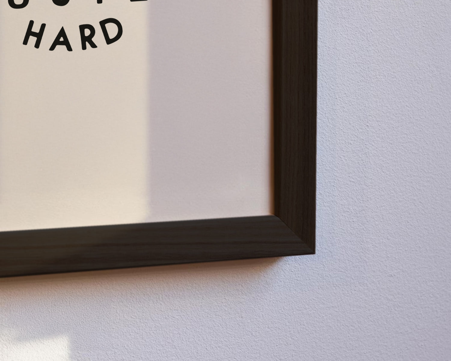 Dieses minimalistische Poster zeigt den motivierenden Spruch „Stay Humble Hustle Hard“ in schwarzer, moderner Typografie auf weißem Hintergrund. Es inspiriert täglich zu Bescheidenheit und harter Arbeit und setzt einen klaren Akzent in jedem Büro, Arbeitszimmer oder Home Gym. Durch sein zeitloses Design fügt sich dieses Motivationsbild nahtlos in moderne und skandinavische Einrichtungsstile ein.