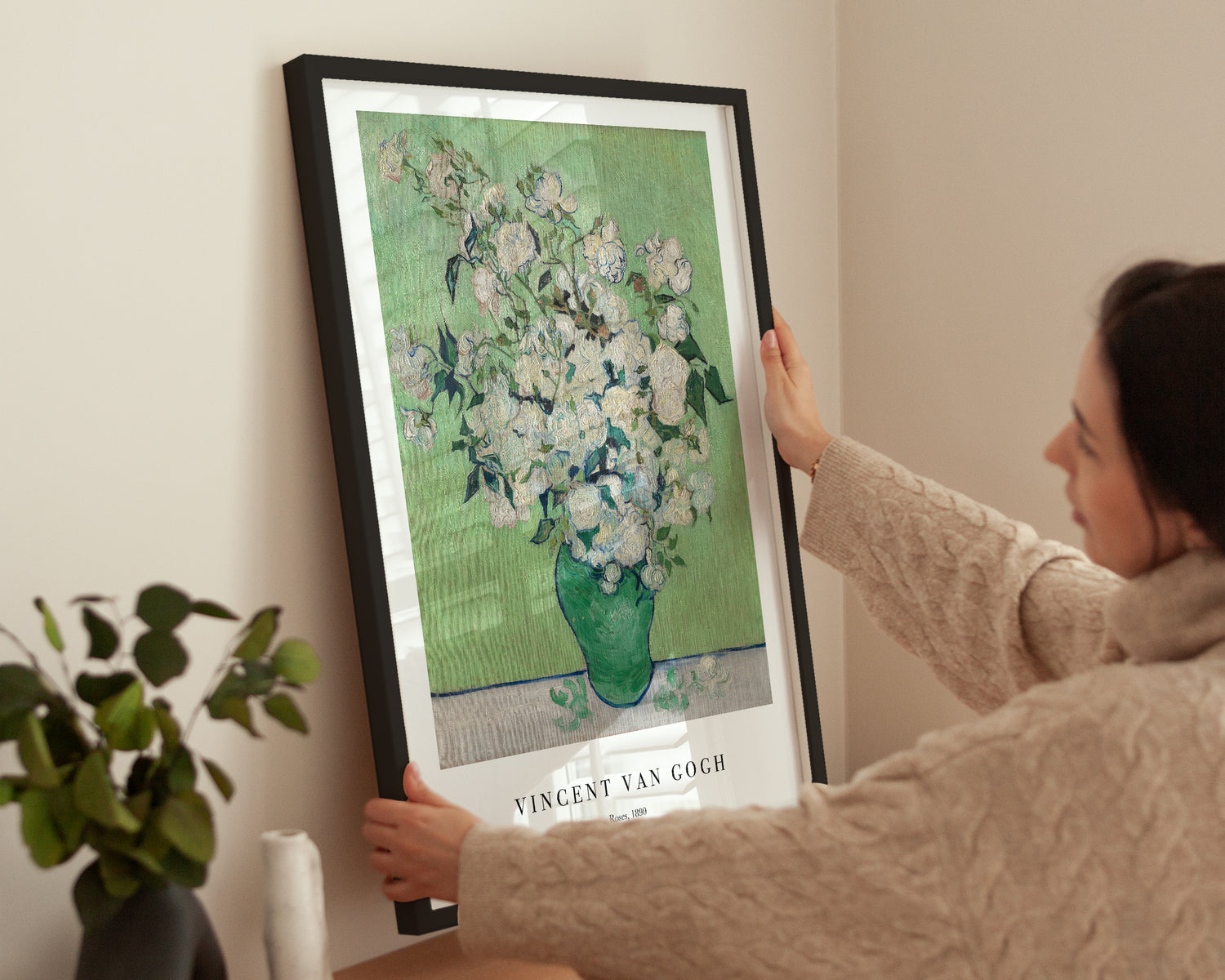 Vincent van Gogh Gemälde: „Roses“ (1890), ein Werk des Postimpressionismus. Ursprünglich von Vincent van Gogh gemalt. Entdecke mehr von seiner Kunst in unserer Kategorie Berühmte Kunstwerke. Künstler: Vincent van Gogh